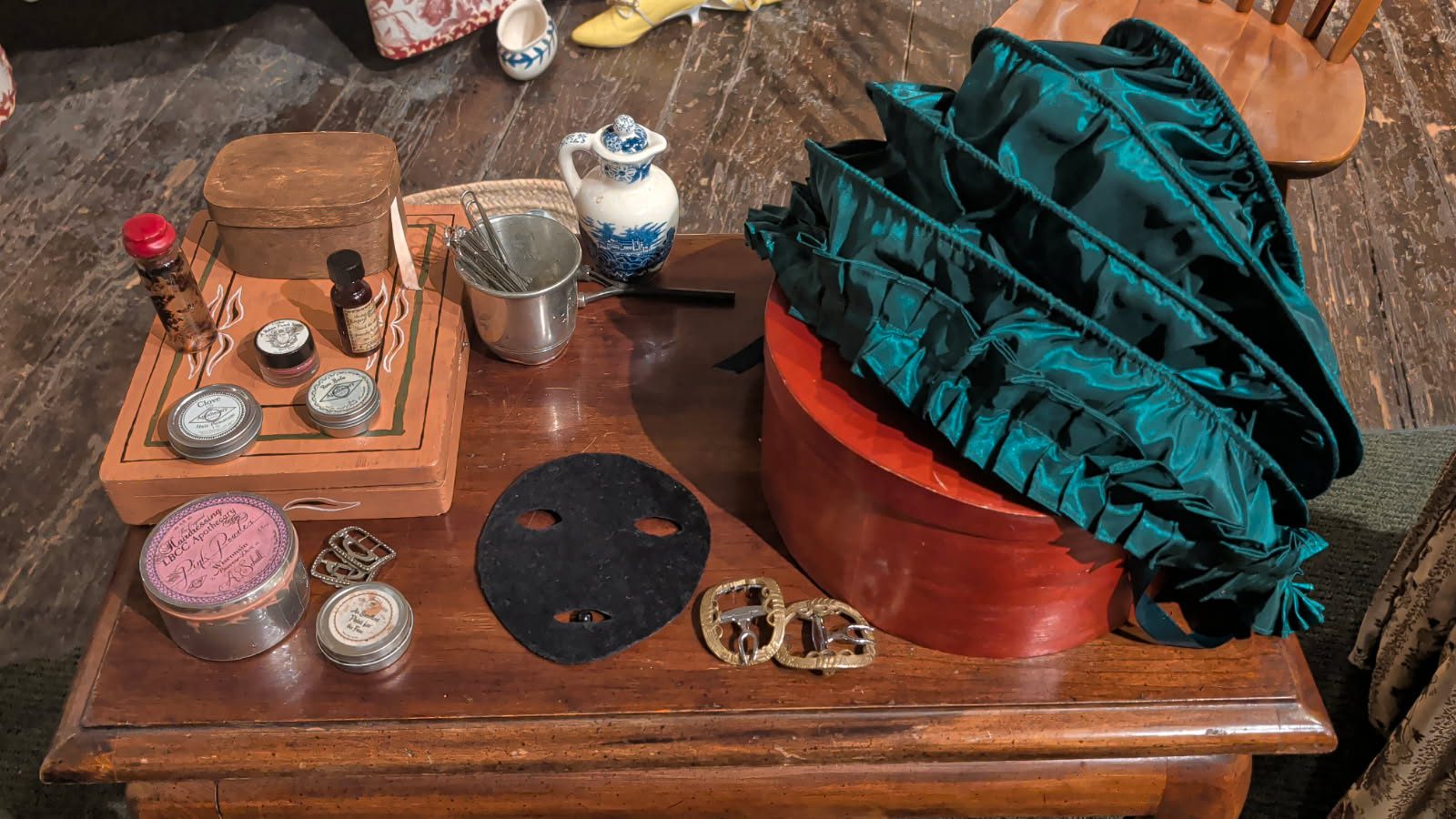 The beauty supplies of an 18th century sex worker were on display for "Naughty Newton at Night" at the Durant-Kenrick House on April 11, 2026. Photo by Bryan McGonigle