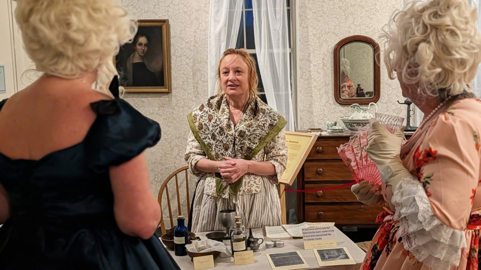 The beauty supplies of an 18th century sex worker were on display for “Naughty Newton at Night” at the Durant-Kenrick House on April 11, 2026. Photo by Bryan McGonigle