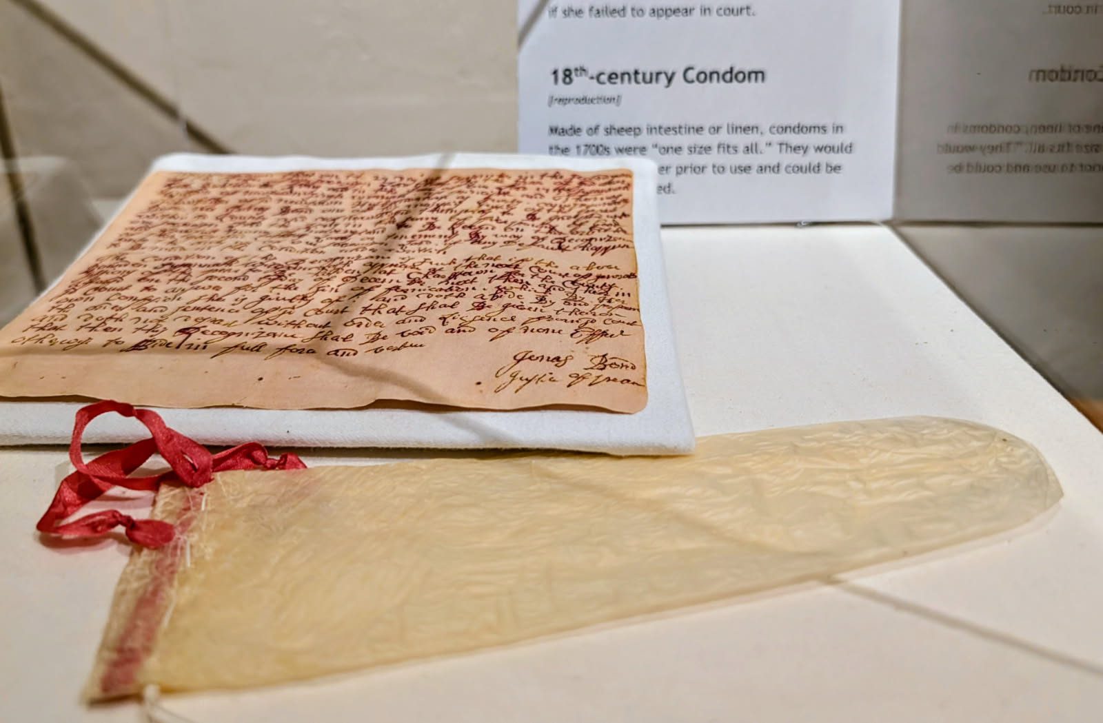 Casually strewn in a glass case in a nearby hallway was a condom. Yes, you read that correctly. An 18th century condom was proudly displayed for all to marvel at, red ribbon and all. And condoms were often made with linen at the time, so they weren’t very effective.