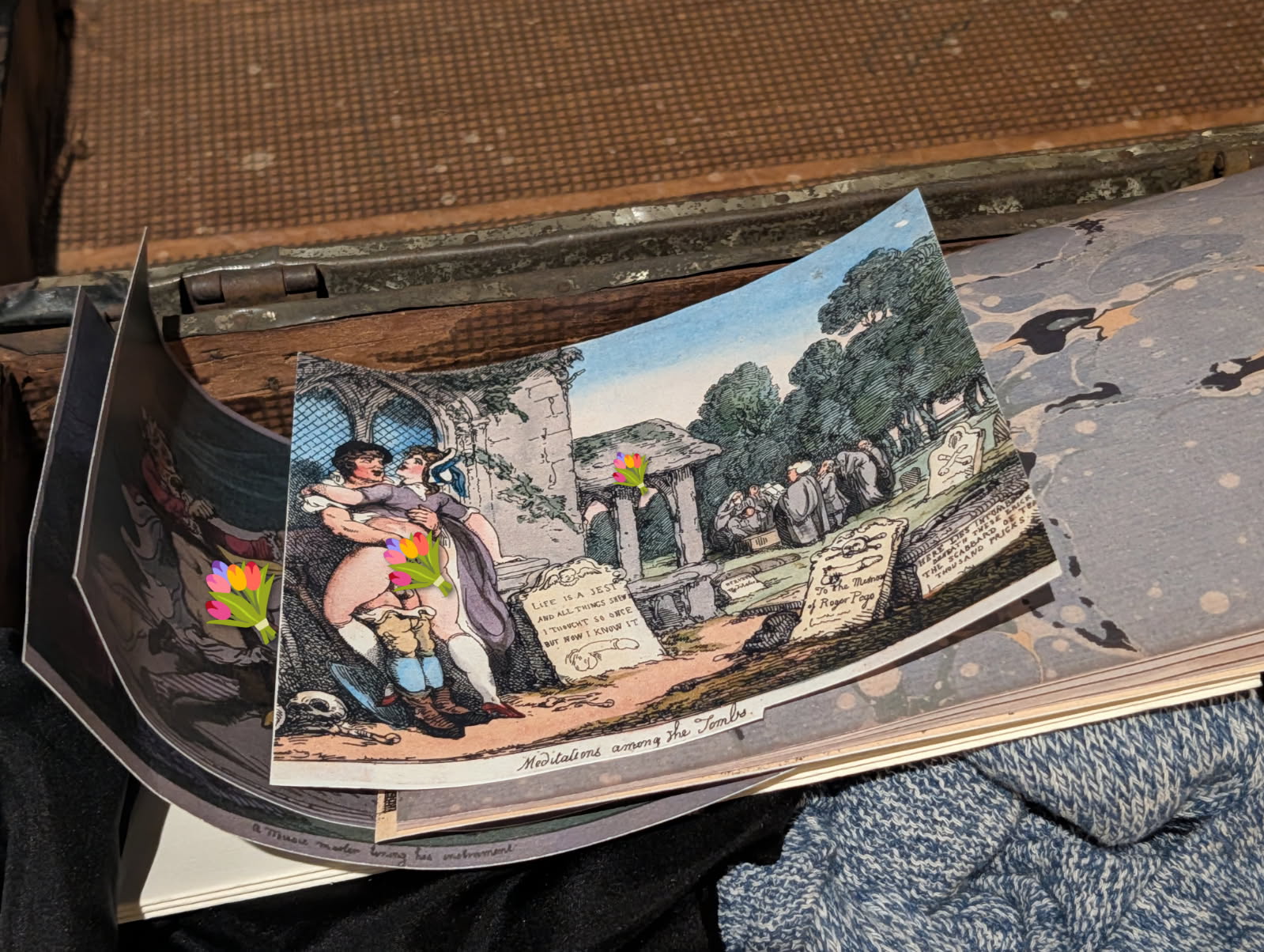 Allen Durant brought these lewd illustrations (with spring flower emojis added to the really explicit parts) home with him from Europe when he was 21. Photo by Bryan McGonigle
