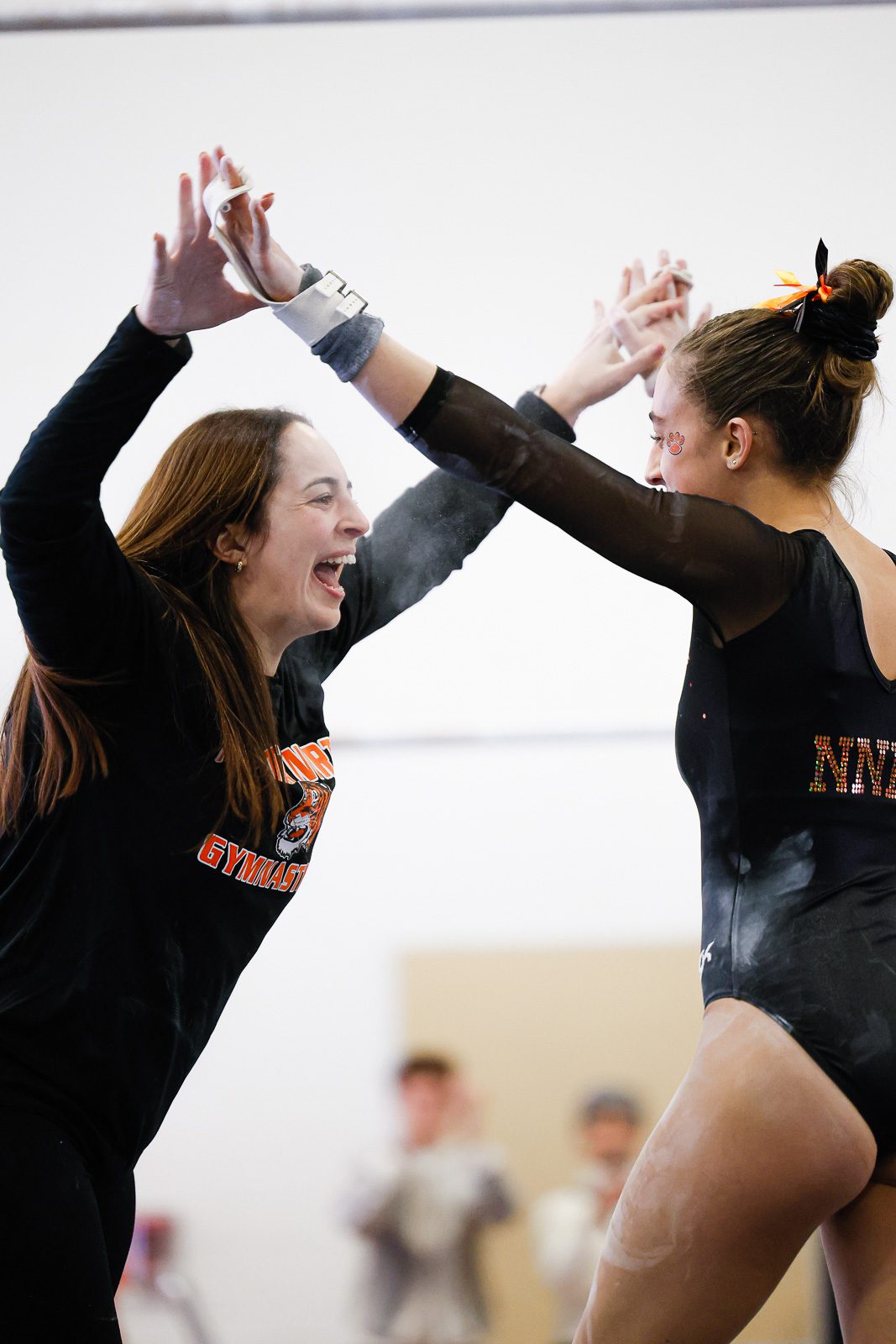 Ahead of Grapski’s record-setting final routine, NNHS gymnastics head coach Cassie Ford told the gymnast to have fun and to follow “what her body knows how to do and what training has taught her to do.”
