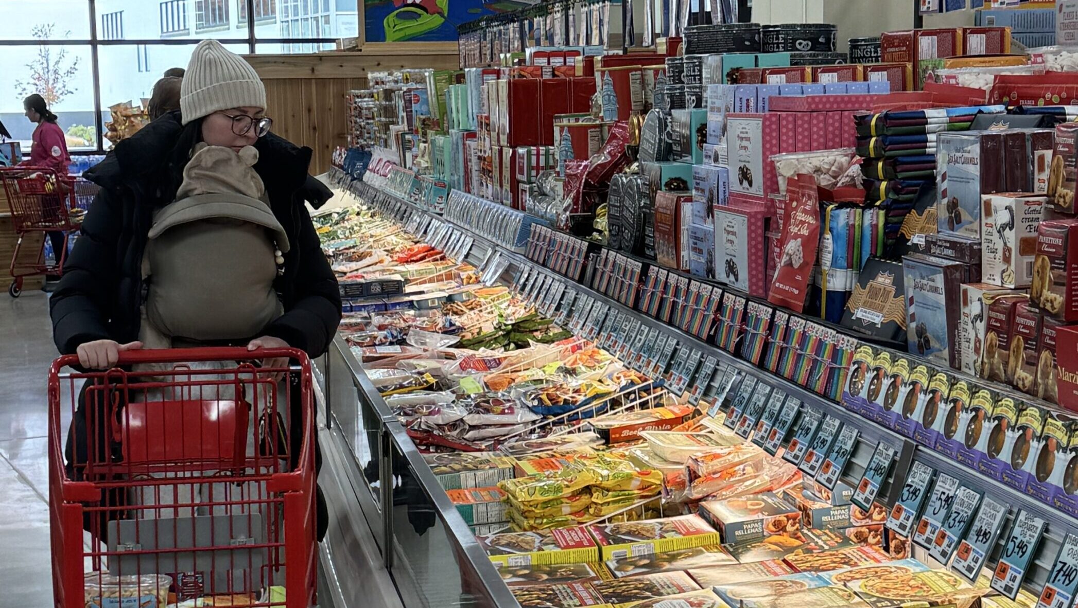 A shopper visits the new Trader Joe's location in Upper Falls with her baby. Photo by Ruyuan Li