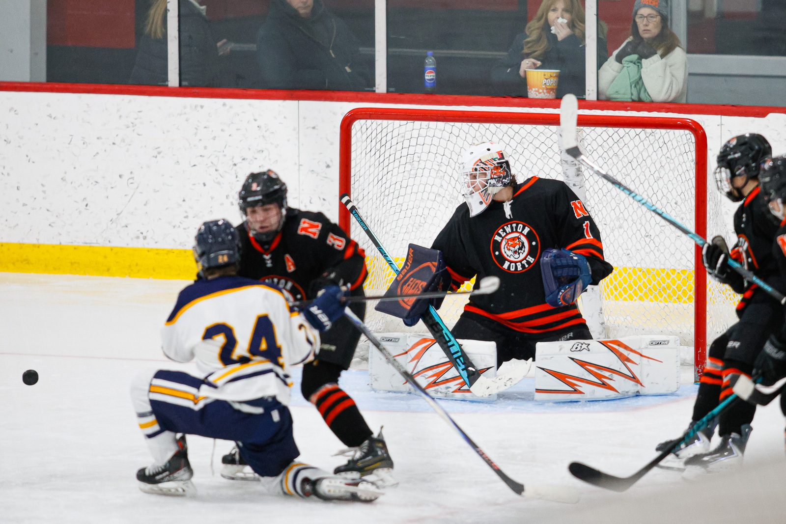 The Newton North Tigers boys hockey team lost to Lexington 3-0 in the consolation game of the Travis Roy Junior Beanpot Tournament at the John A. Ryan Skating Arena in Watertown on January 17, 2026. (c) Burt Granofsky/Newton Beacon