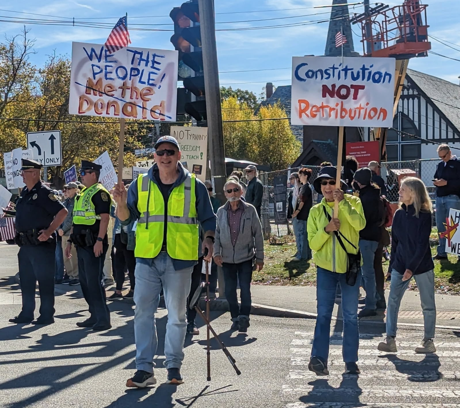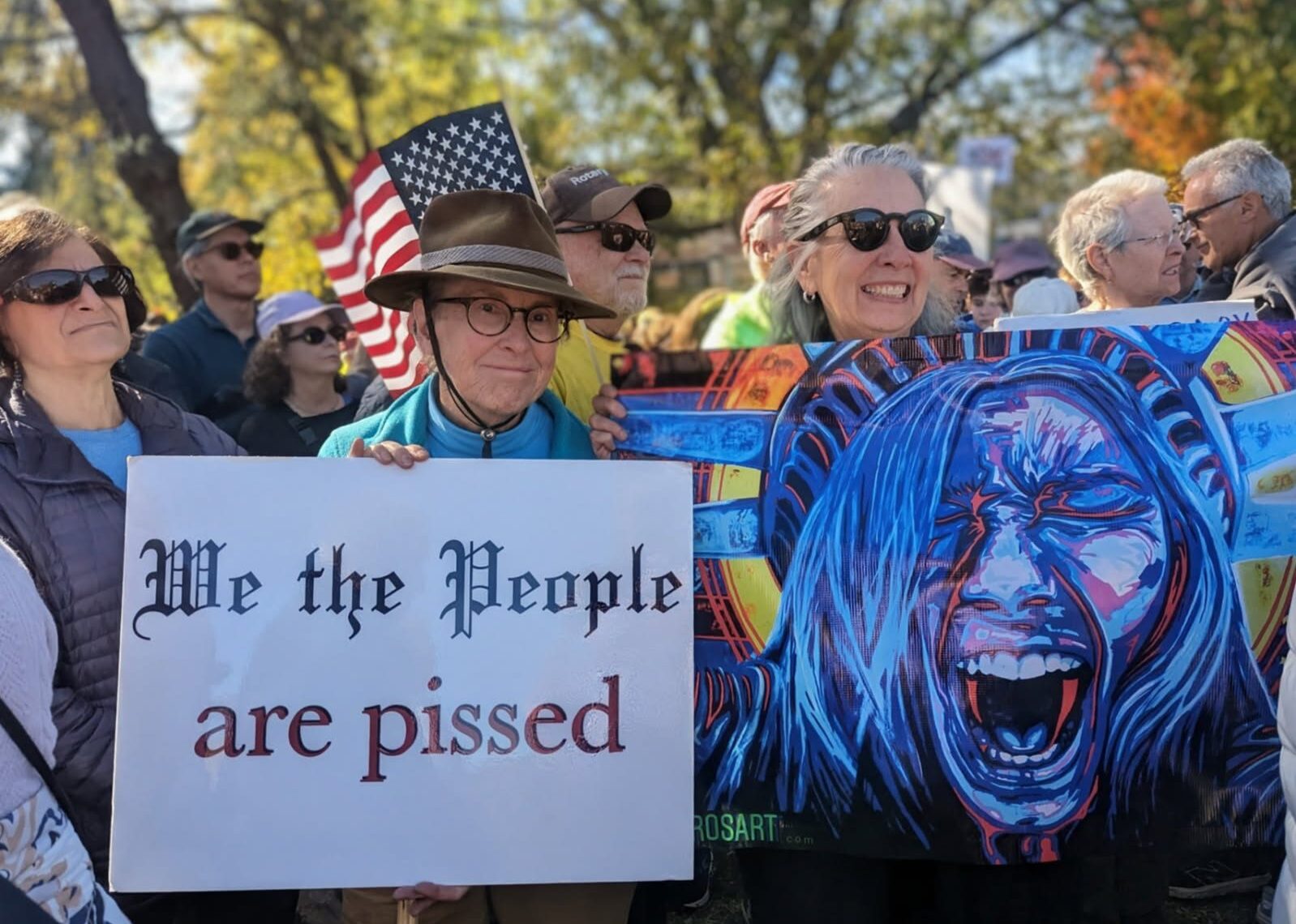 Protesters displayed signs expressing anger toward the Trump administration during the “No Kings” protest on Oct. 18, 2025. Photo by Bryan McGonigle