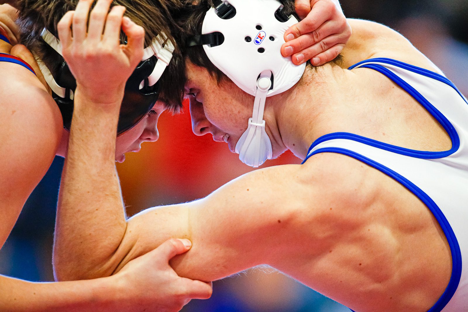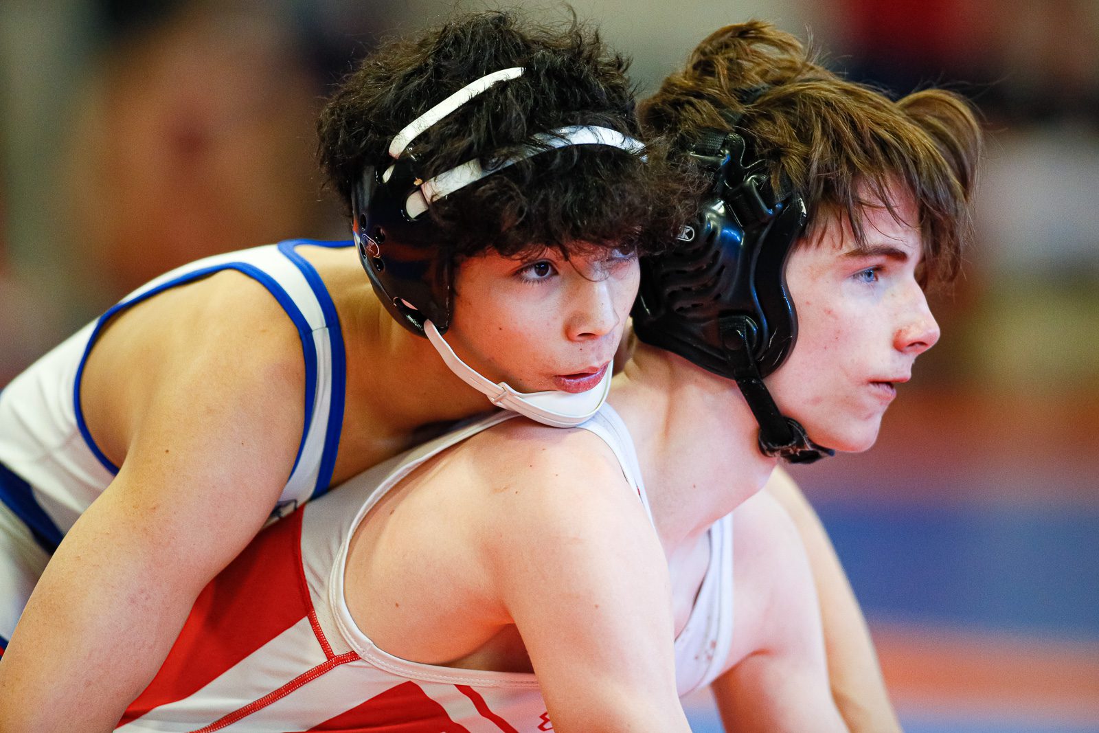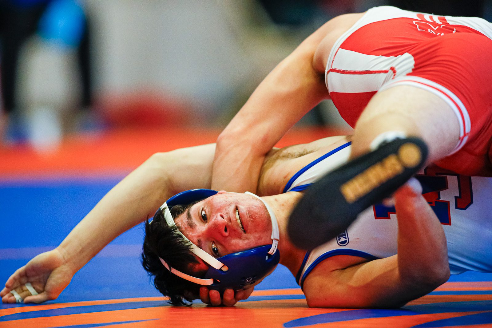 Matthew Luxama gets a handle on his opponent from Melrose. (c) Burt Granofsky/Newton Beacon