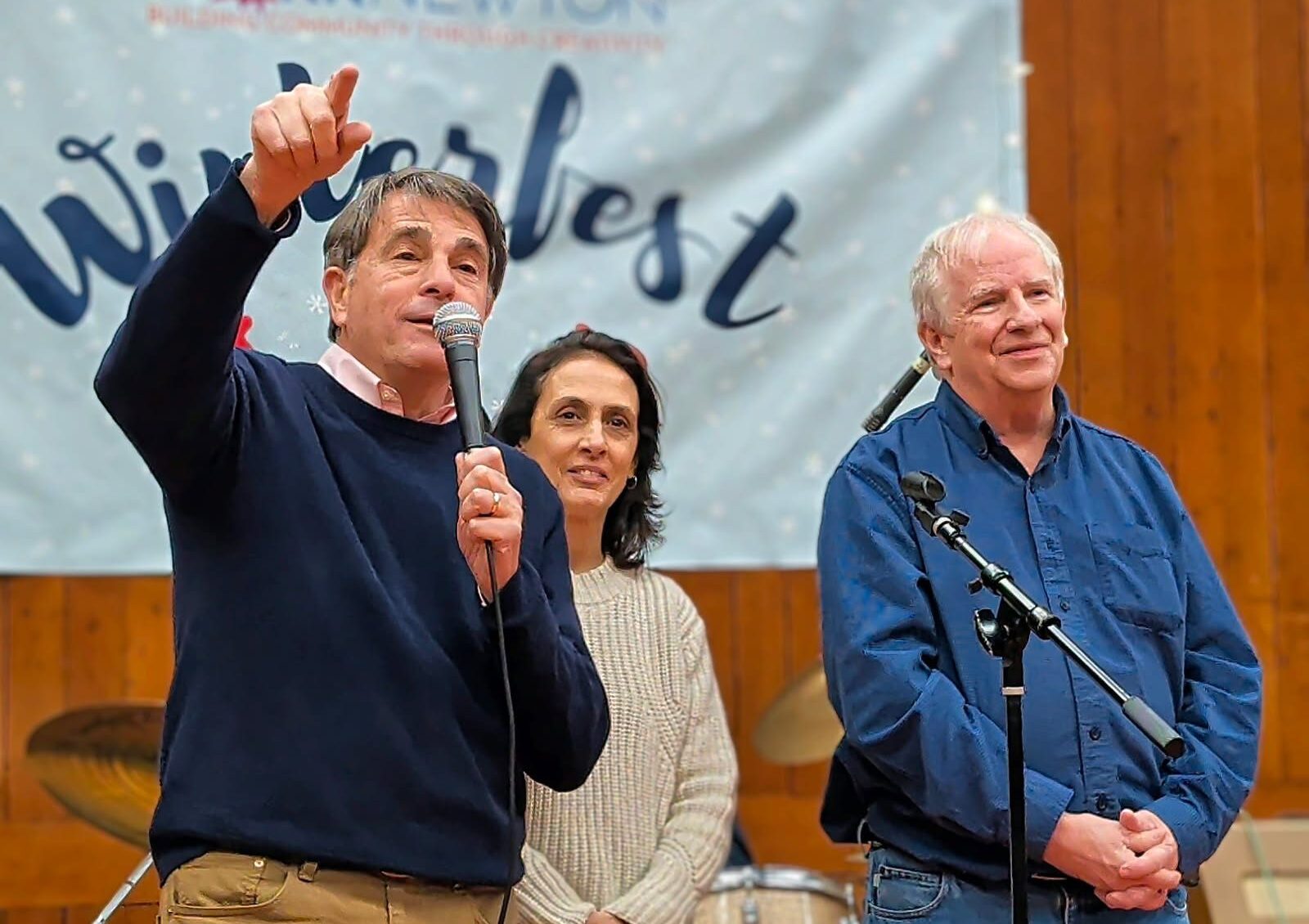 Mayor Mark Laredo, shown here with Hyde Community Center Director Helen Garity and City of Newton’s Chief Community Services Officer John Rice, welcomes guests to the WinterFEST Soup Social at the Hyde Community Center on Jan. 24, 2026. Photo by Bryan McGonigle