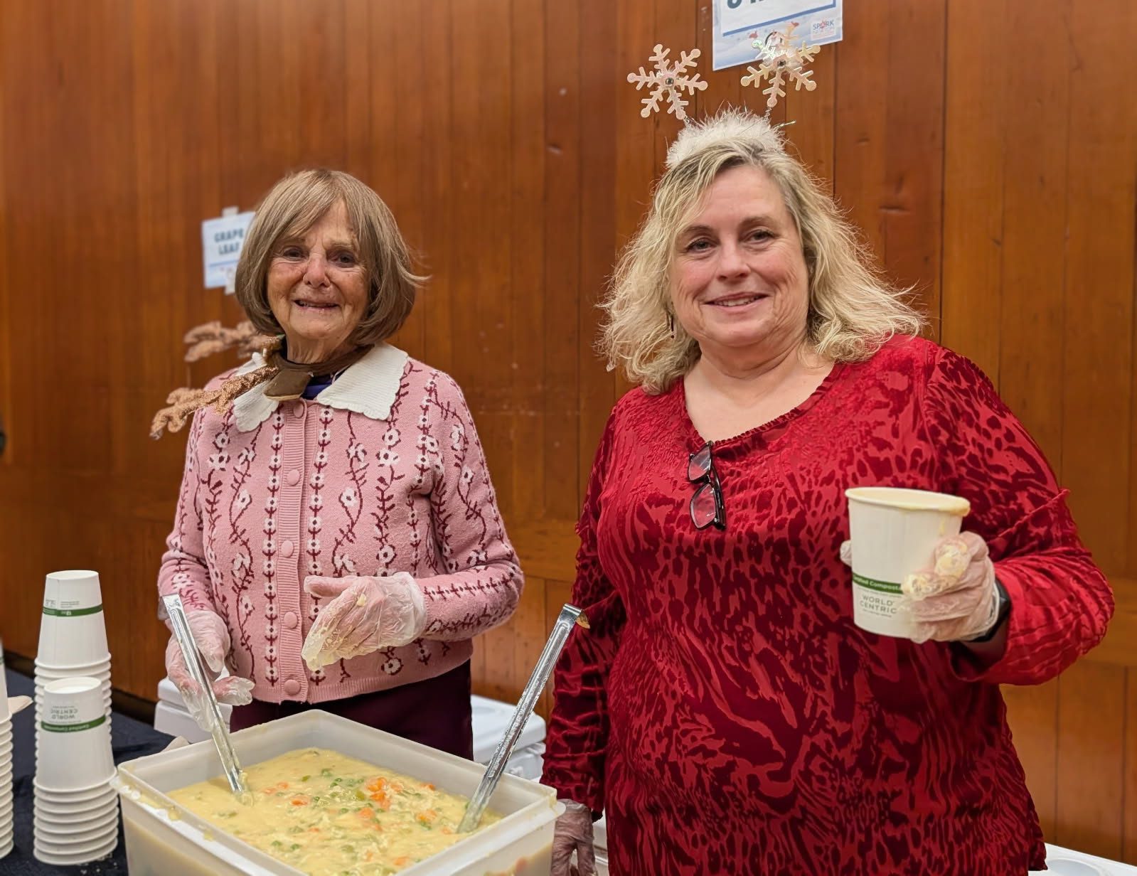 City Councilors Susan Albright, left, and Pam Wright, right, pass out soup at the WinterFEST Soup Social at the Hyde Community Center on Jan. 24, 2026. Photo by Bryan McGonigle