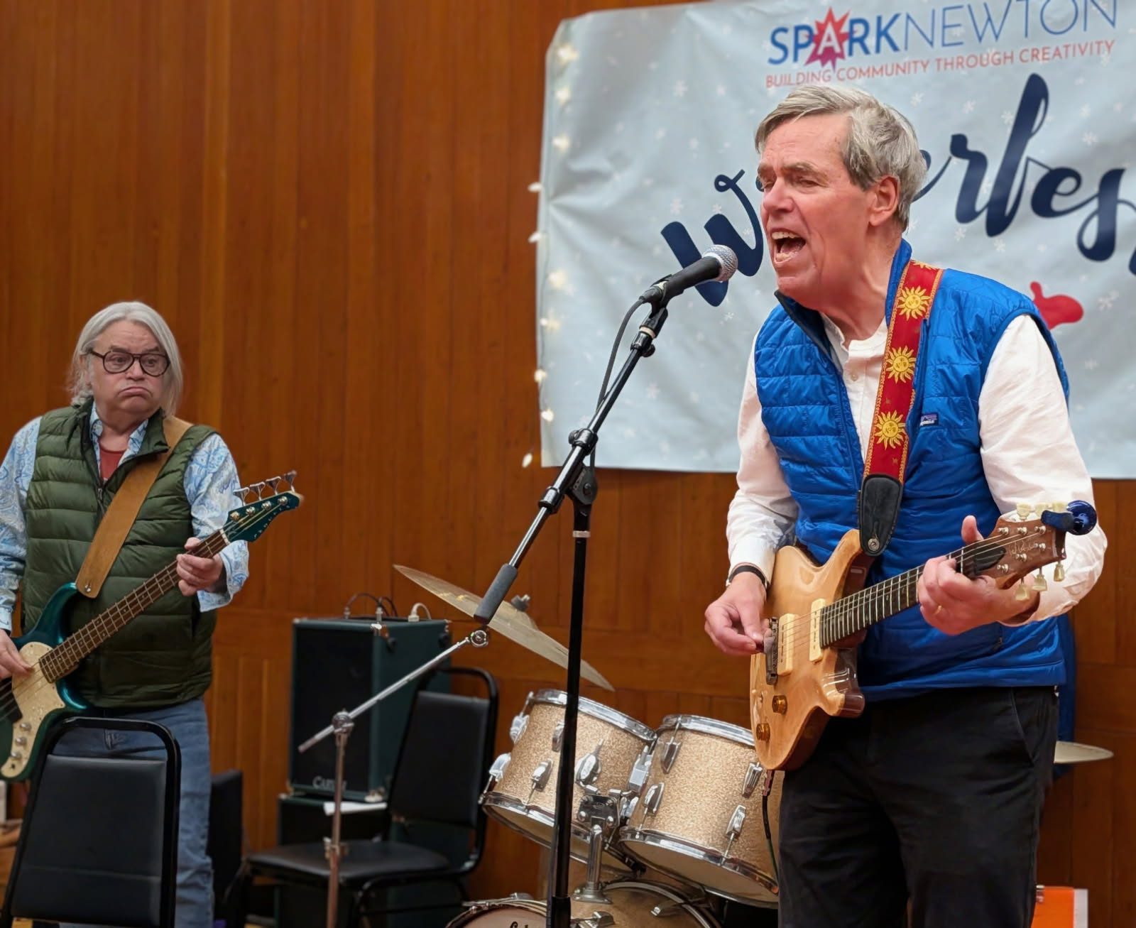 The annual festival is meant to “build community through creativity” during what’s usually the coldest, darkest time of the year, Spark Newton Executive Director Blair Lesser Sullivan said as she was highlighting Spark Newton’s community involvement to the crowd at Newton Centre on opening night. “We do a lot of free arts and culture events, including this festival and festivals throughout the year. We do a public art initiative. We give out art scholarships and micro grants. We have a grant open now for our festival of the arts.”