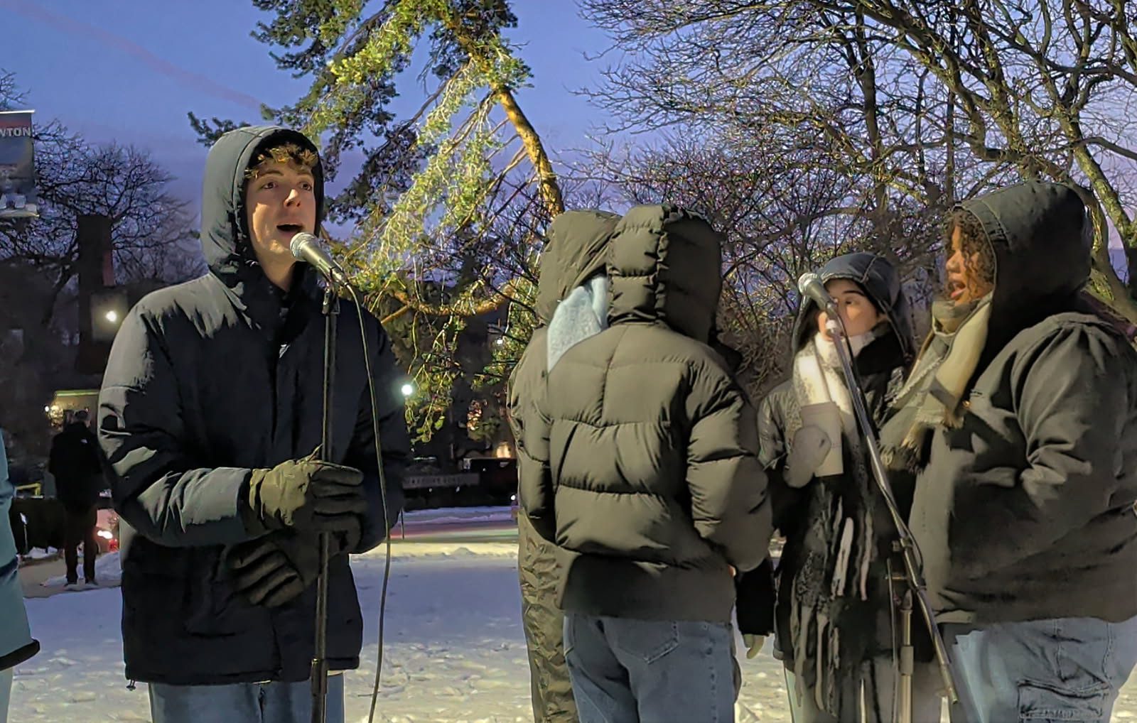 Friday brought ice sculptures and a cappella harmony to the Newton Centre Green.