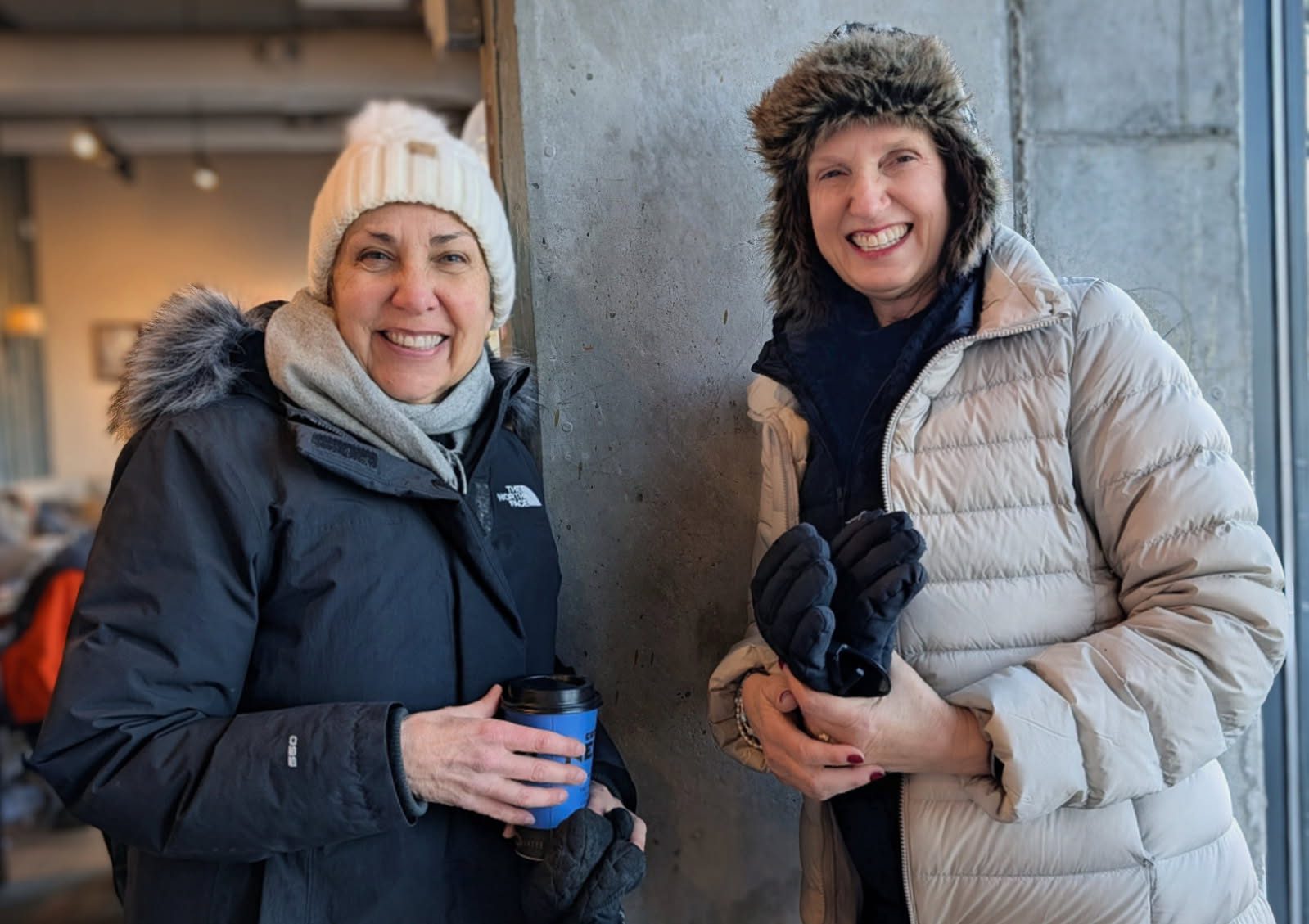 Newton Arts and Culture Director Meryl Kessler, left, and Spark Newton Board Chair Gloria Gavris mingle during the second day of WinterFEST on Jan. 24, 2026. Photo by Bryan McGonigle
