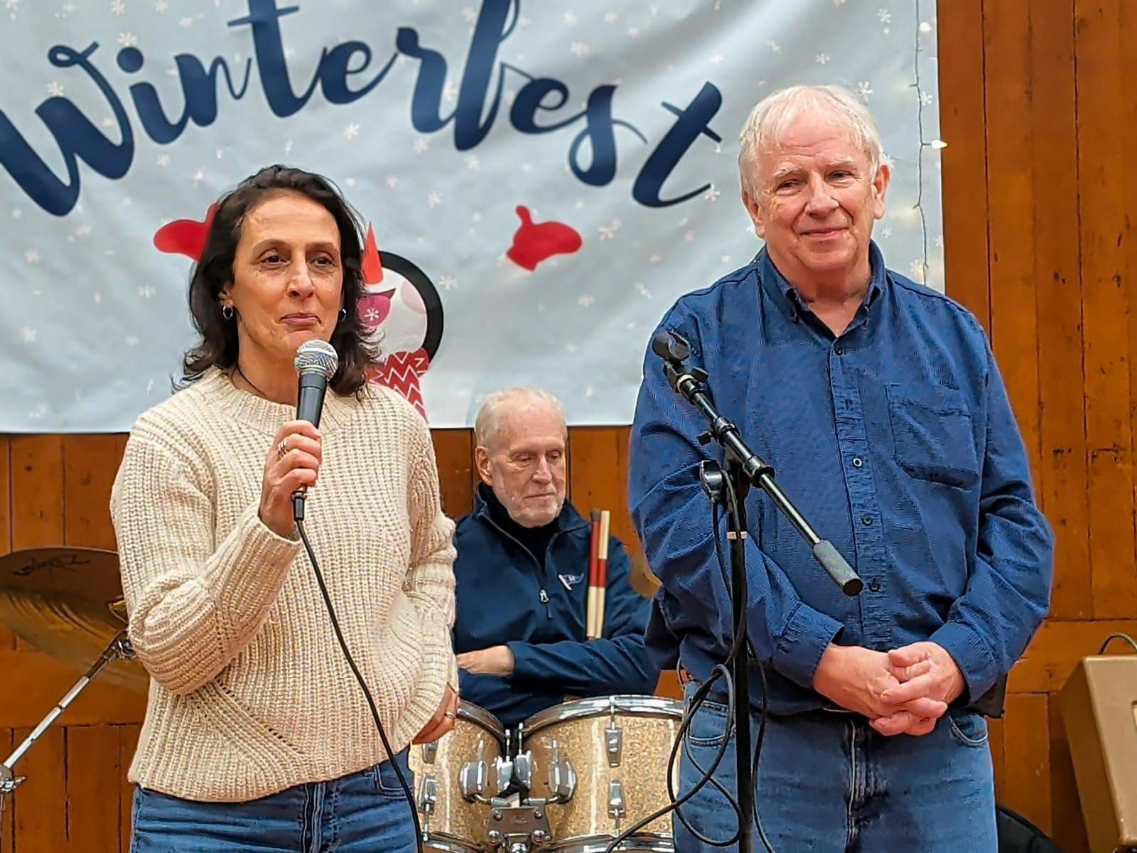 Helen Garity, new director of the Hyde Community Center, speaks to the crowd alongside her predecessor, John Rice, at the WinterFEST Soup Social at the Hyde Community Center on Jan. 24, 2026. Photo by Bryan McGonigle